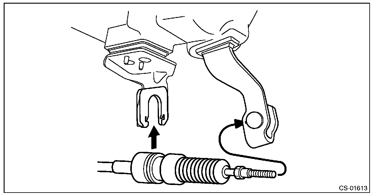 6) Insert the tip of inner cable into connector hole of select lever, and fix the cable to bracket.