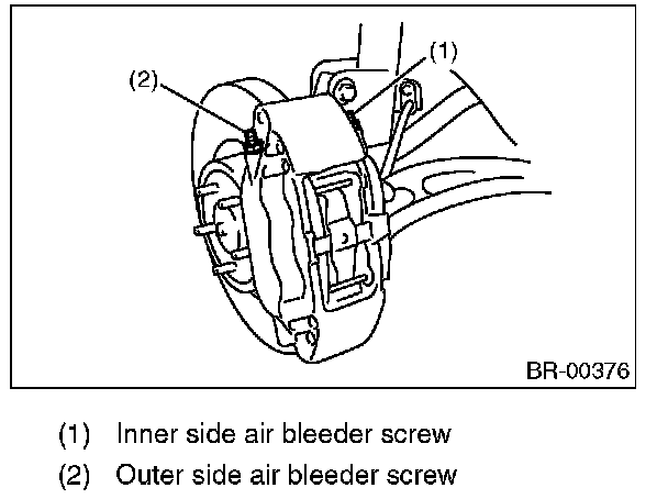 ^ For calipers with two air bleeder screws, bleed air from the inner side first and then the outer side. Repeat this operation at least twice.