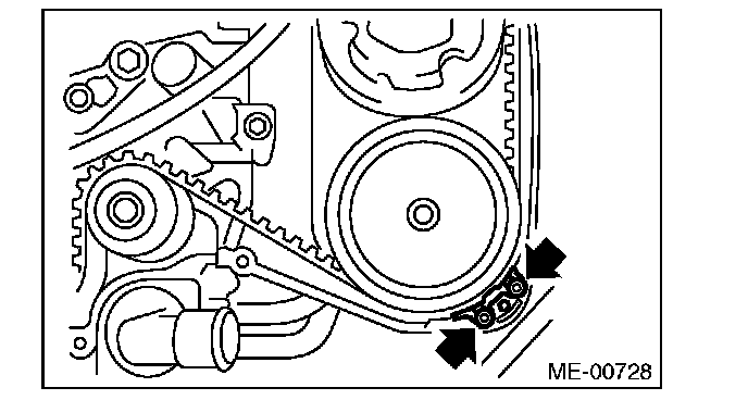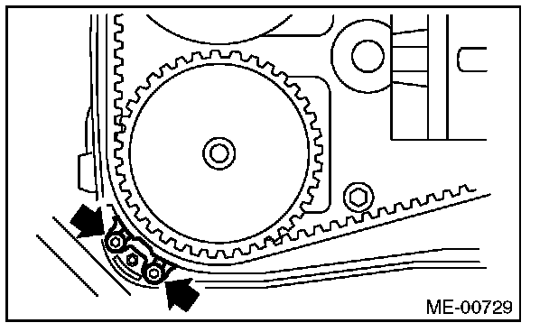 (2) Using white paint, put an alignment mark or an arrow mark on timing belts in relation to the crank sprocket and cam sprockets.