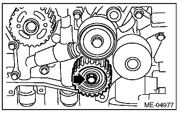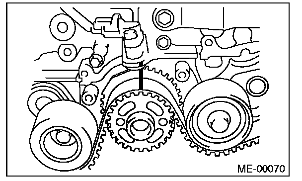 Make sure that the marks on the timing belt and sprockets are aligned.