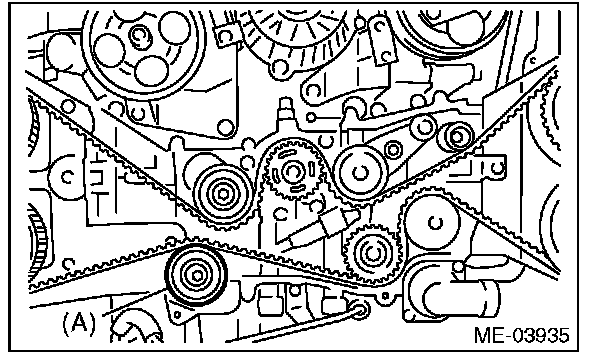 2) Check the condition on the back surface of the timing belt. If cracks are found, replace the timing belt.