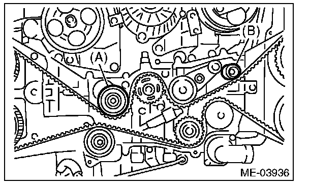 1) Remove the belt idler (A) and (B).
