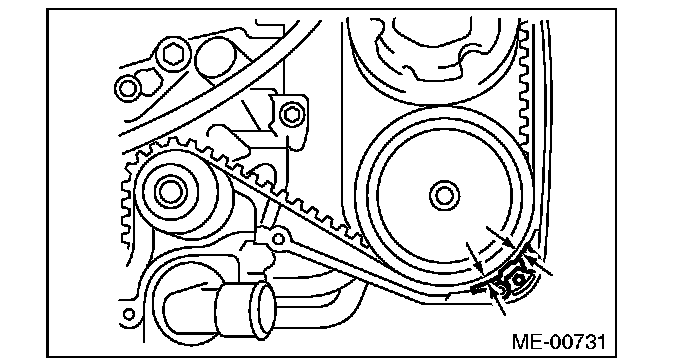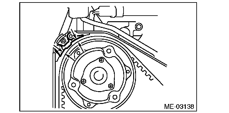 ^ Be careful not to let oil, grease or coolant contact the timing belt. Remove quickly and thoroughly if this happens.