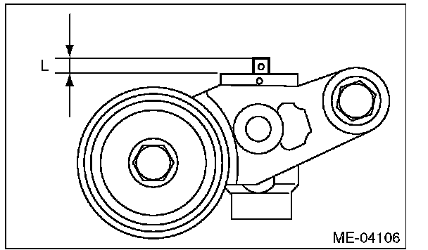 4) Measure the amount of adjuster rod protrusion "L" from the end surface of the cylinder. If it is not within specifications, replace the automatic belt tension adjuster assembly with a new part.