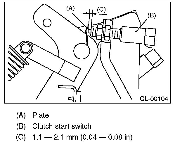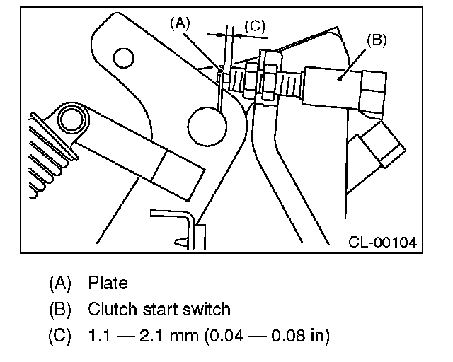 3) Adjust the gap of the clutch pedal plate and the clutch switch to be 1.1 - 2.1 mm (0.04 - 0.08 in).