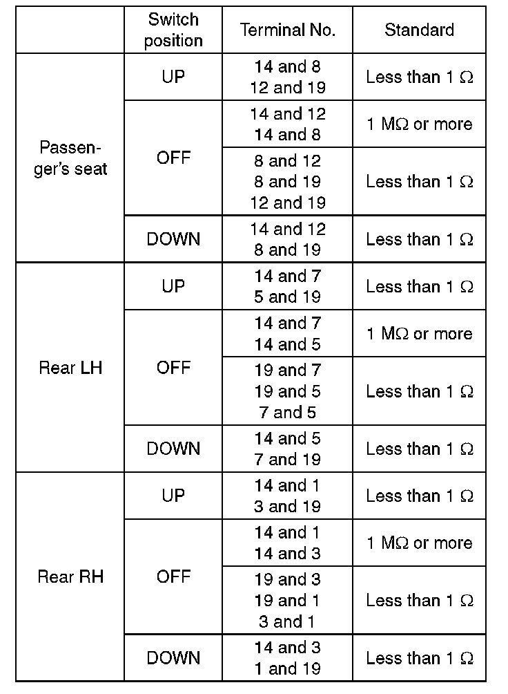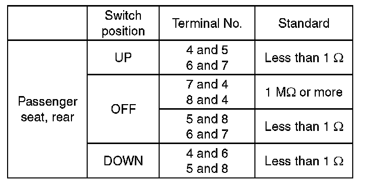 2. Replace the power window main switch if the inspection result is not within the standard value.