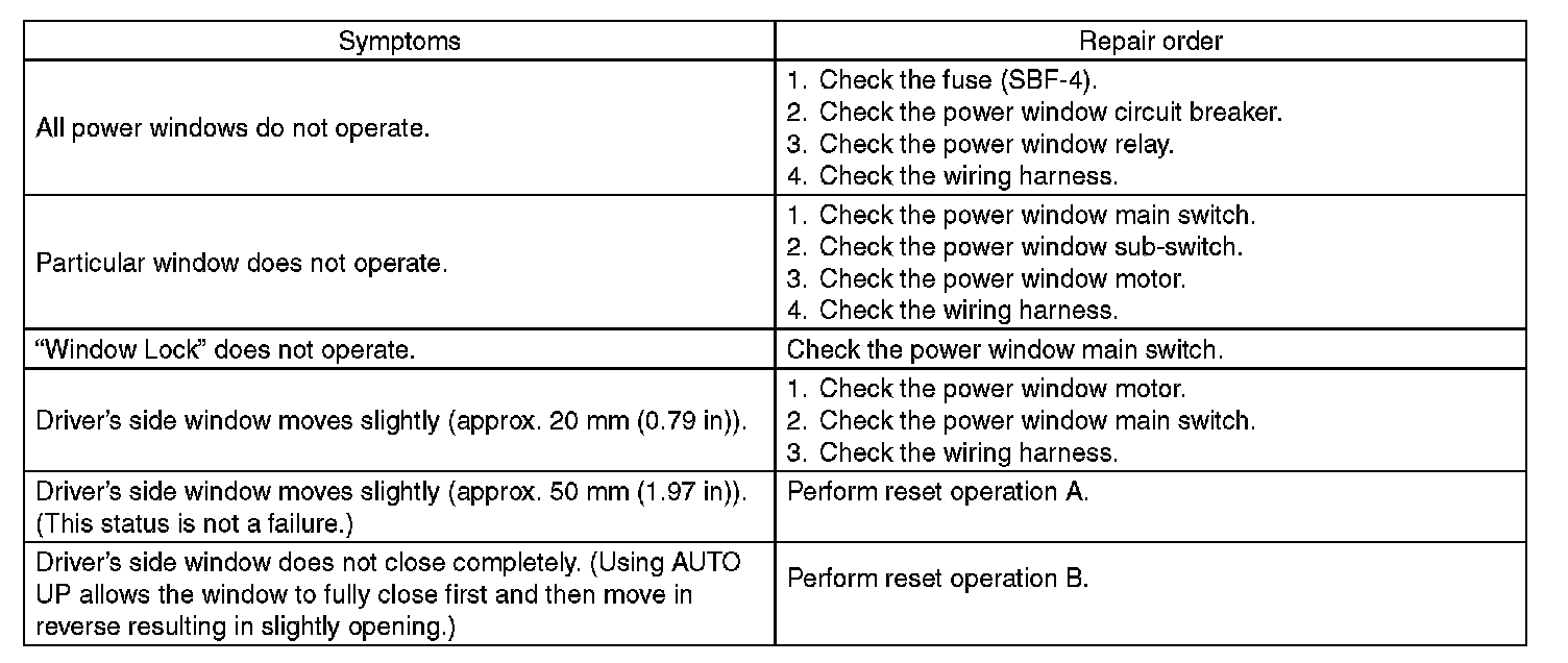 6. Check that the window operates properly by operating the "AUTO UP" and "AUTO DOWN" switch. If the window does not fully open/close properly, repeat steps 1) to 6).