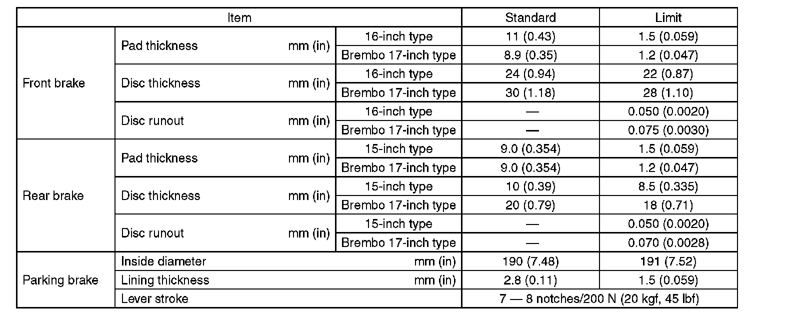 Refer to parking brake specifications.