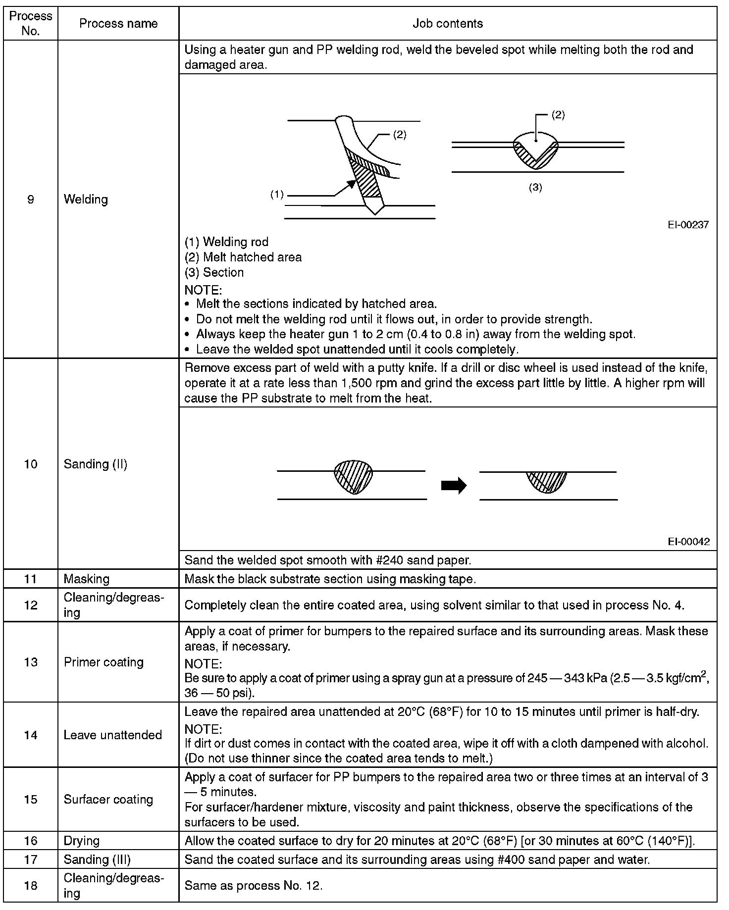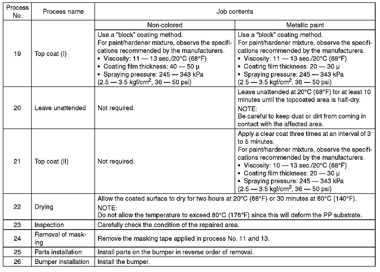 2. REPAIR INSTRUCTIONS FOR COLORED PP BUMPER