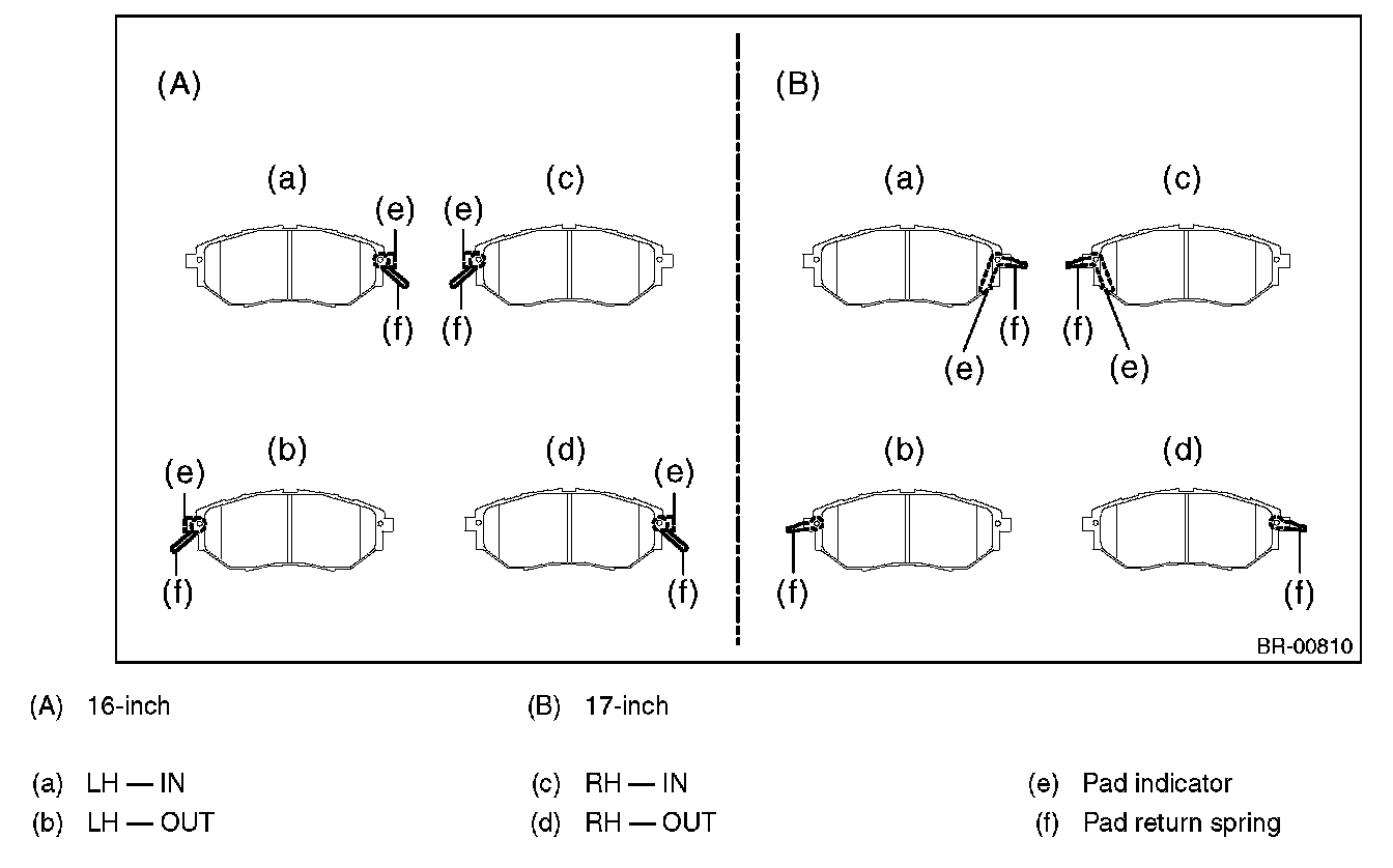 1) Check the pad thickness (A).