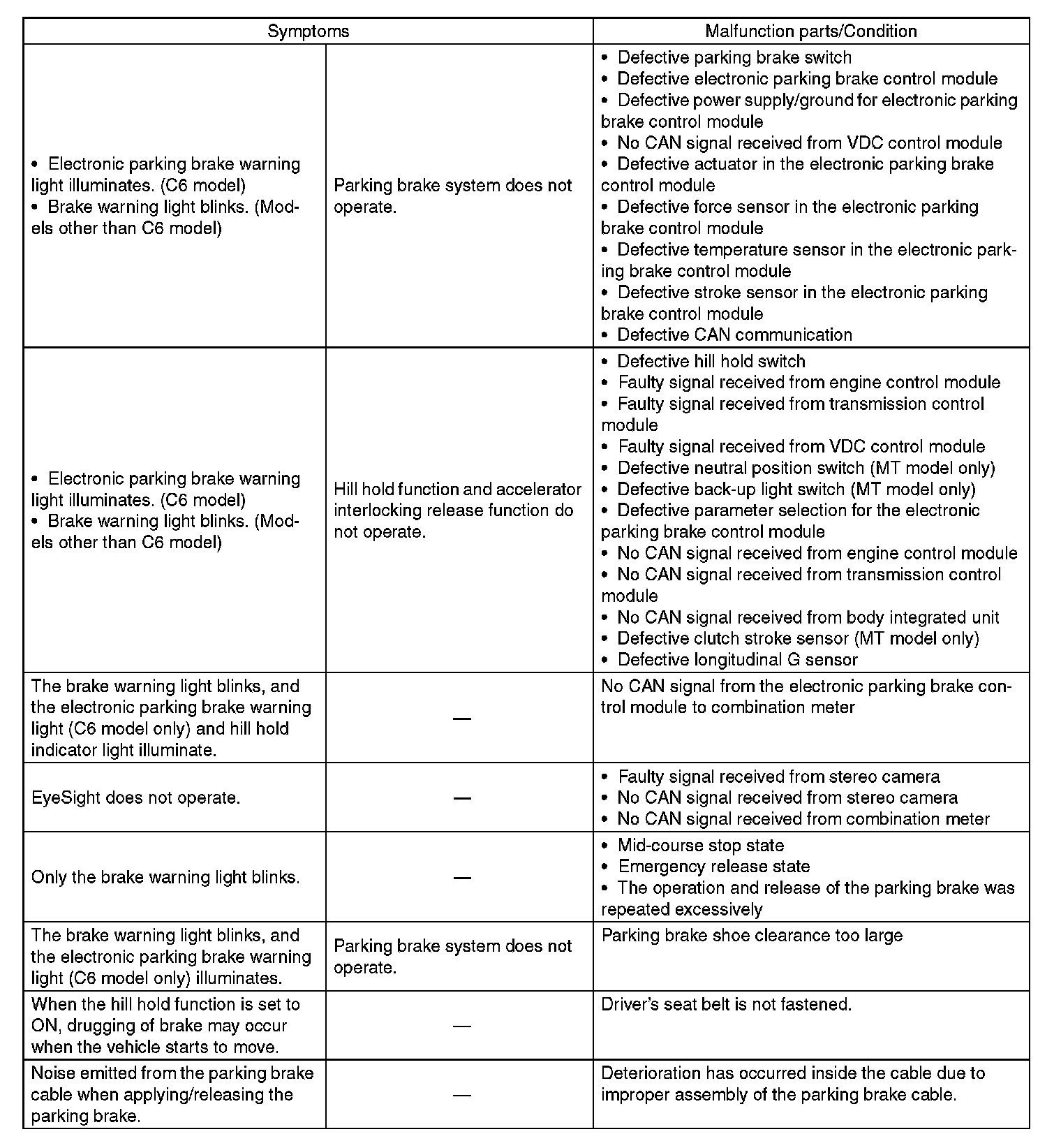General Diagnostic Table