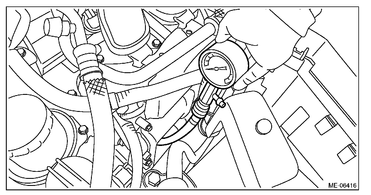 13) Crank the engine by starter motor and read the value when the needle of the compression gauge becomes stable.