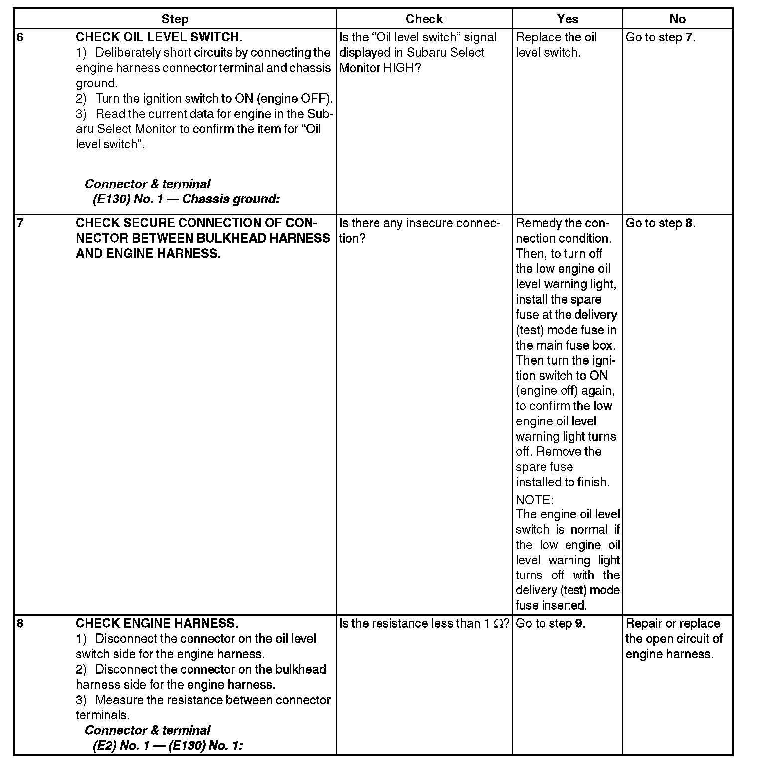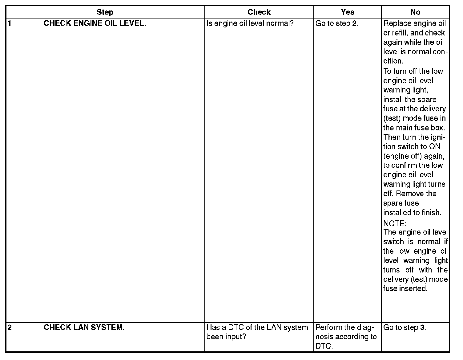 INSPECTION WHILE LOW ENGINE OIL LEVEL WARNING LIGHT IS ON