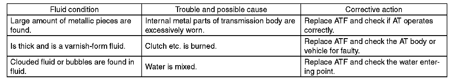 When replacing ATF, check the inside condition of transmission body by inspecting the drained ATF.