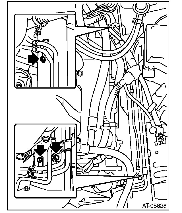 Make sure there are no ATF leaks in joints between the transmission, radiator, ATF cooler pipes, and ATF cooler hoses.