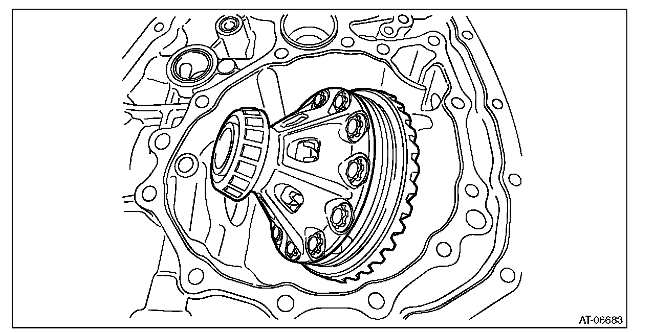 6) Install the differential case (LH) to the differential case (RH).