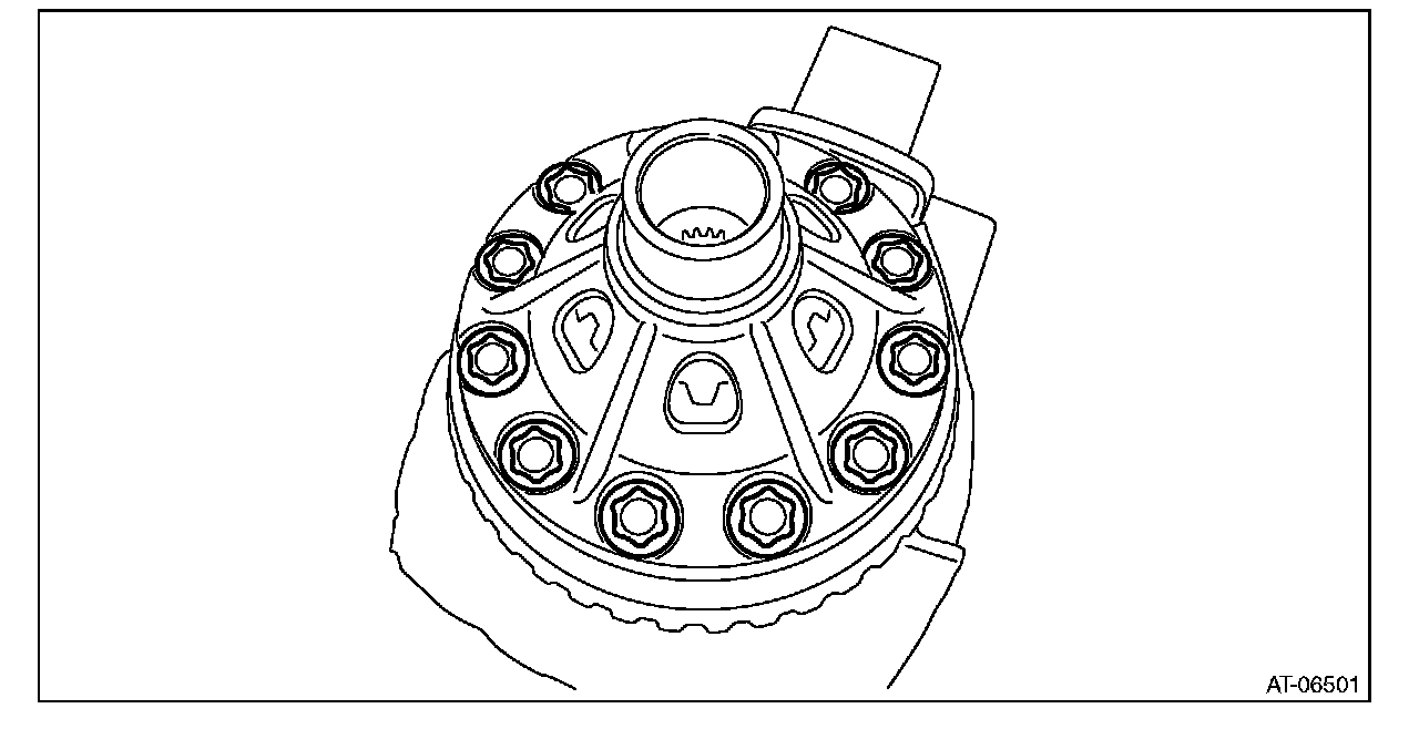2) Remove the hypoid driven gear mounting bolt using the ST.