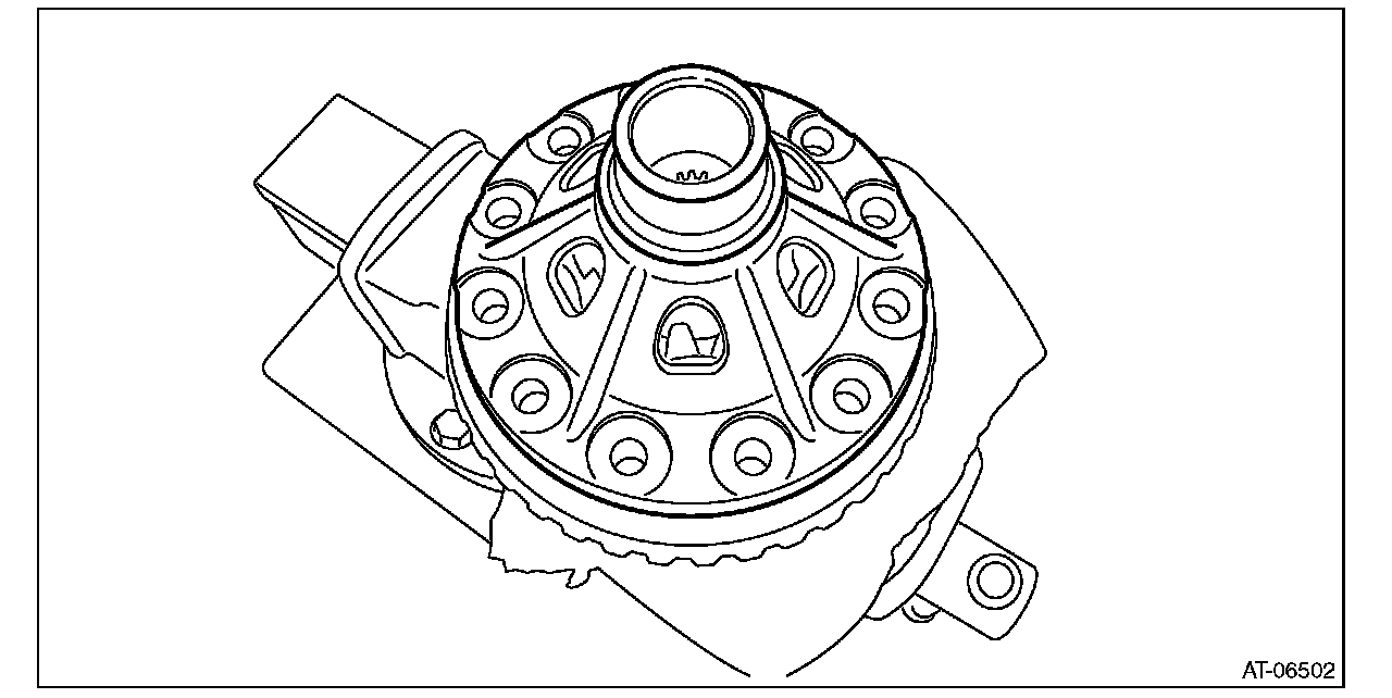 ^ Support the differential case assembly by hand to avoid damaging the retainer mounting hole of the converter case.