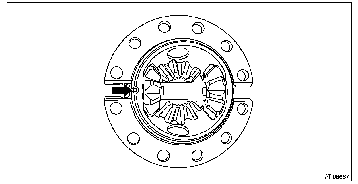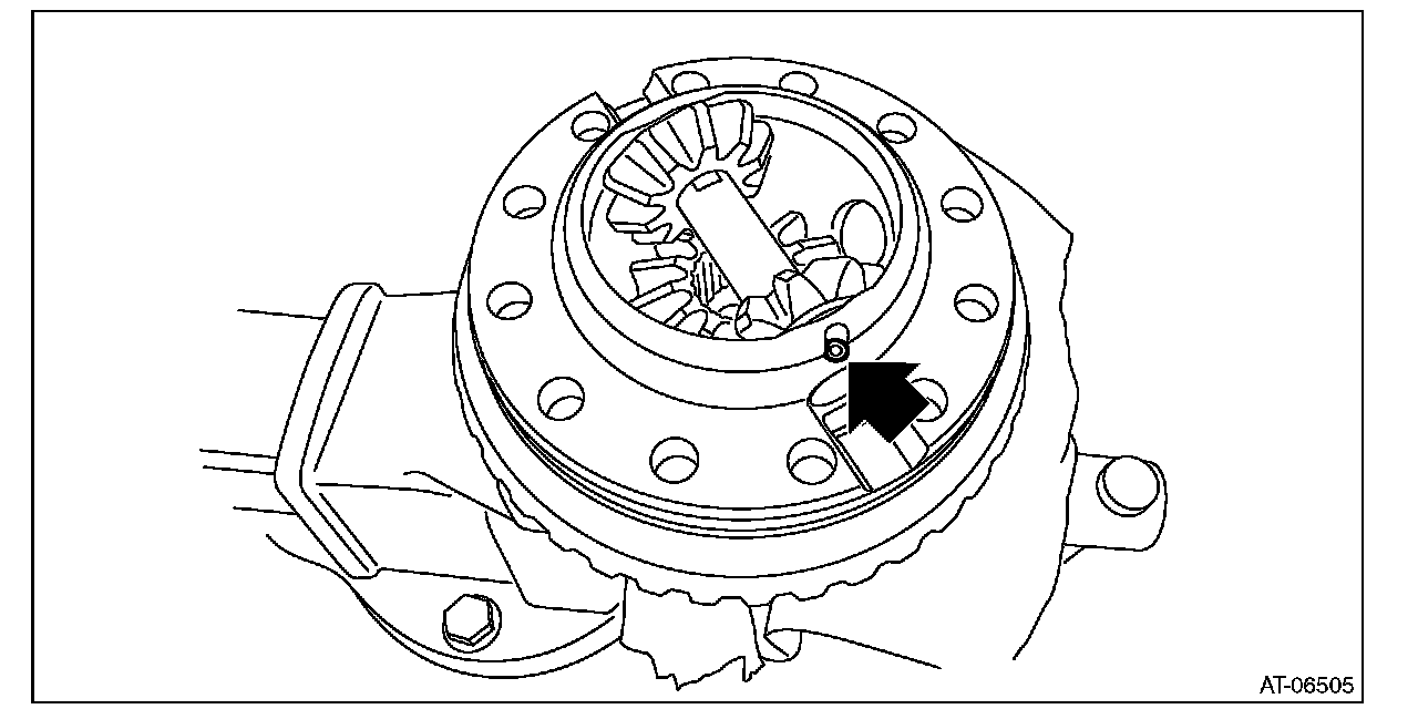 2) Install the differential bevel pinions into differential case (RH) and install the pinion shaft.
