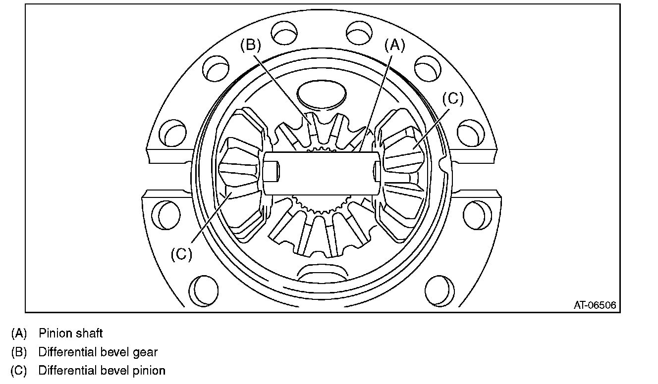6) Remove the pinion shaft, then remove the differential bevel gear, washer and differential bevel pinion.