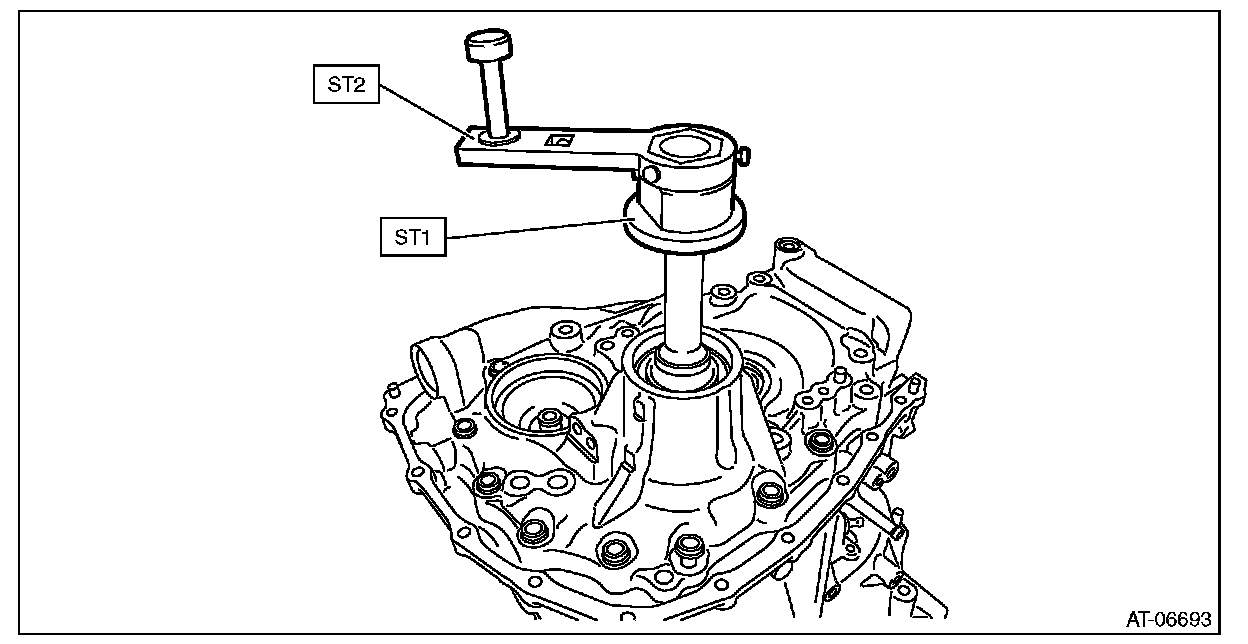 7) Using the ST, install the hypoid driven gear by tightening the installation bolt.