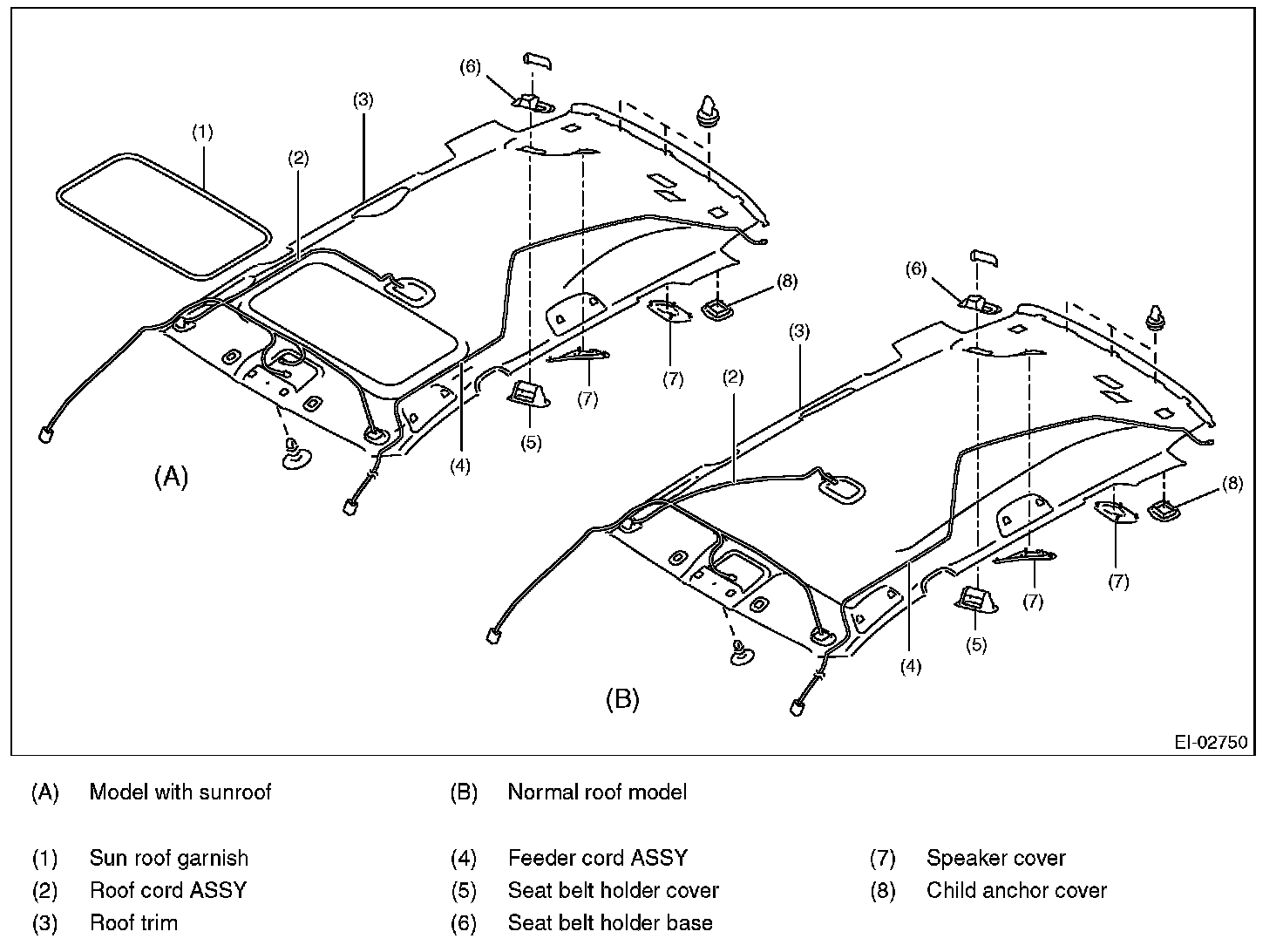 1. Release the clips and remove the feeder cord and roof cord from the roof trim.