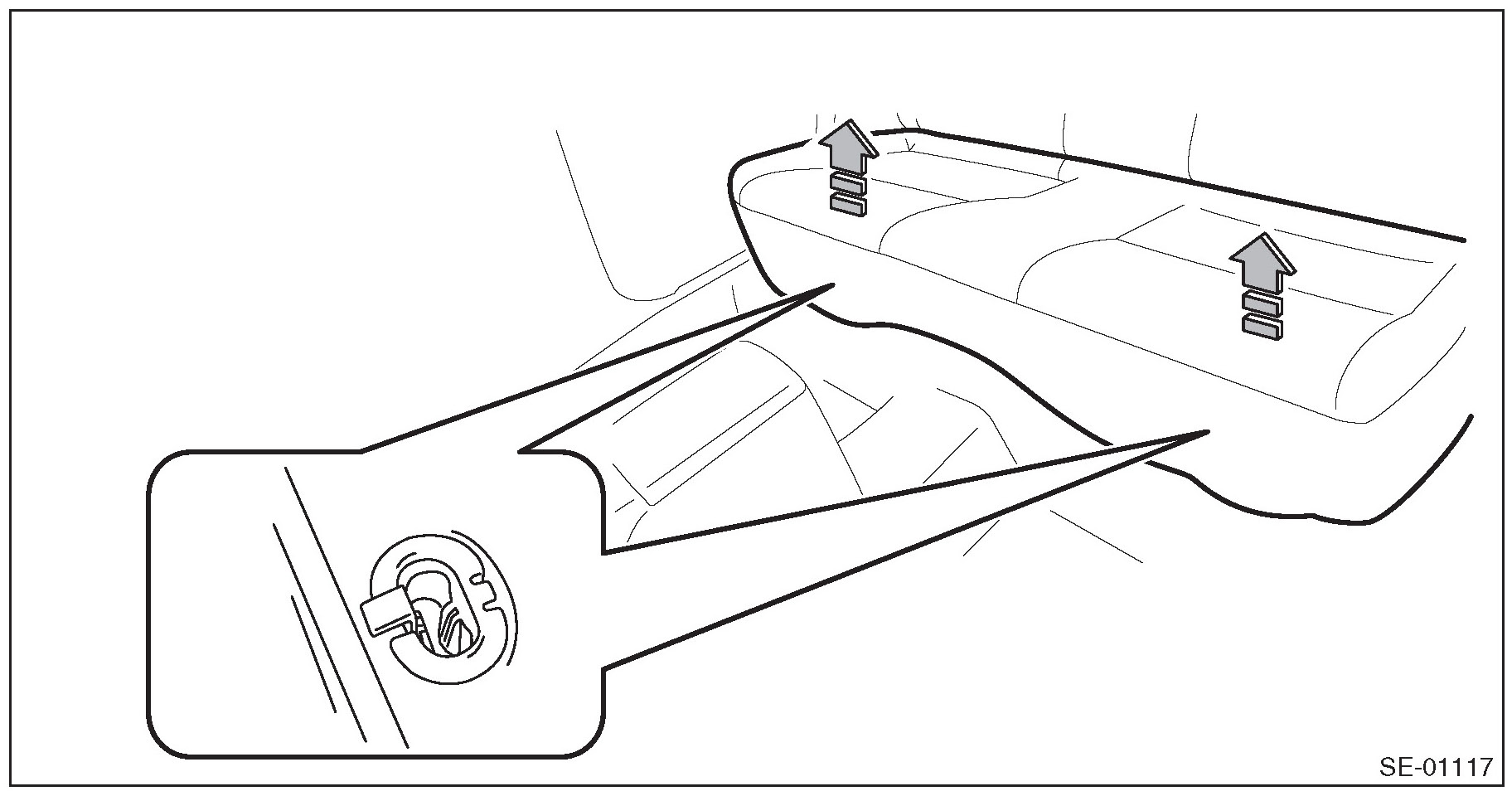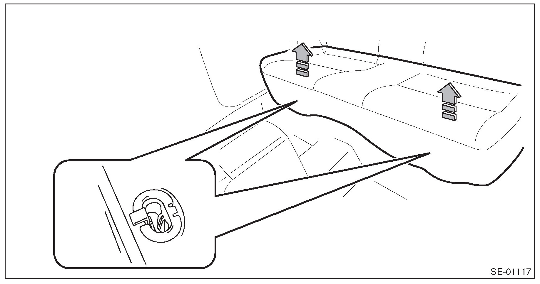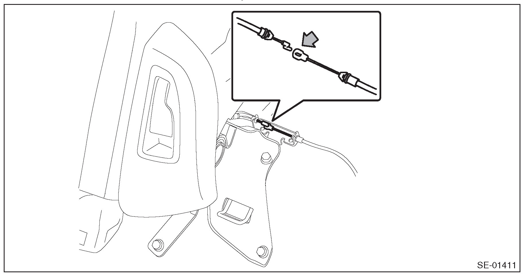 CAUTION: If the hook is disconnected from the vehicle body, replace the hook with the new part to prevent the decline of the fixed force of the seat.