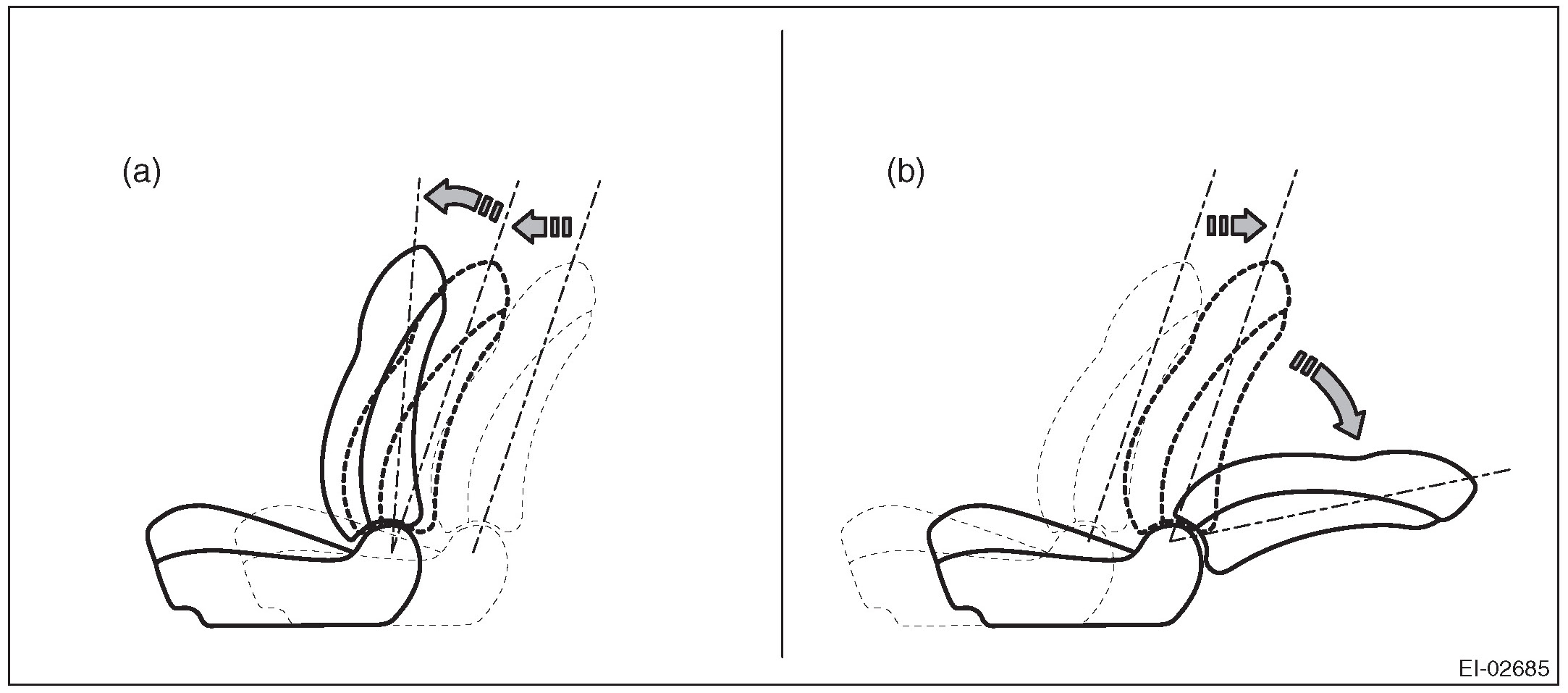 3. Tilt the passenger's seat backrest rearward and move the seat to the rearmost position. (b)