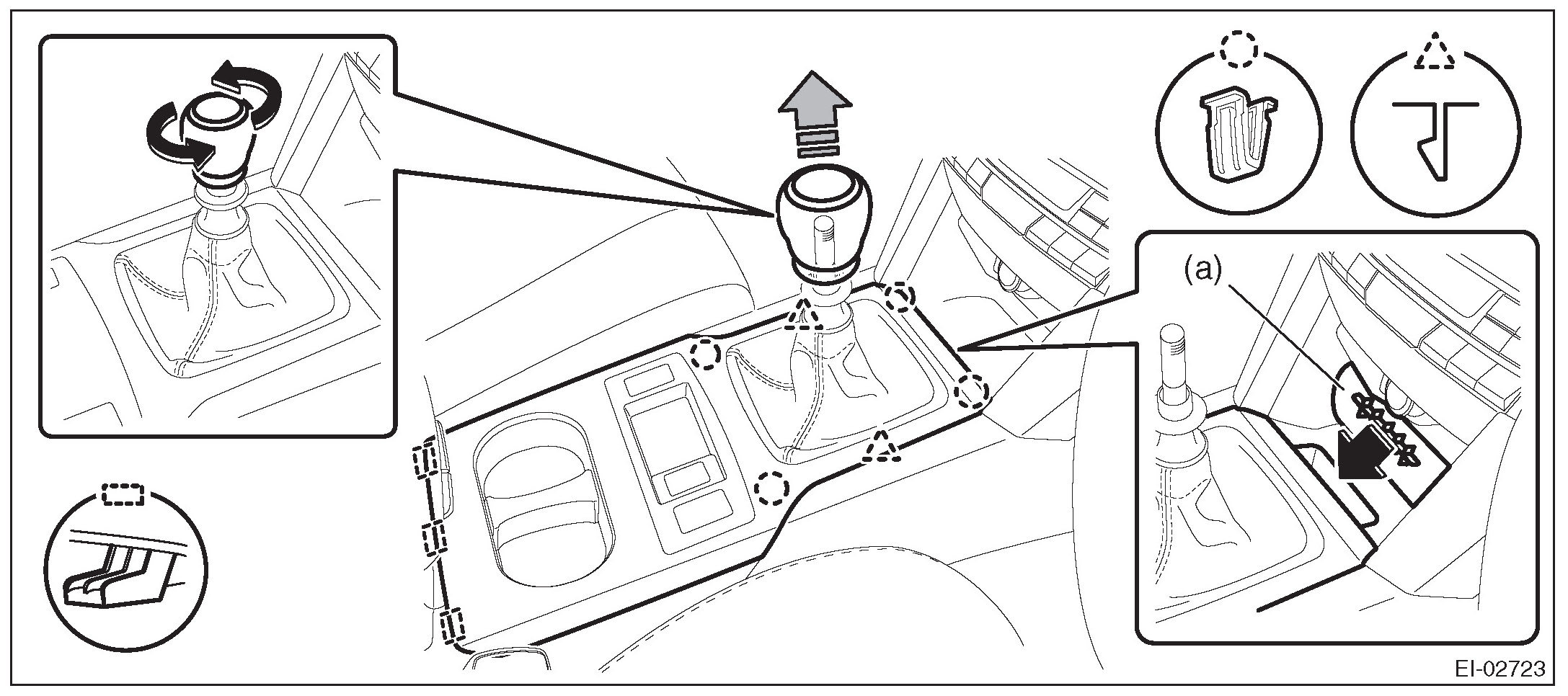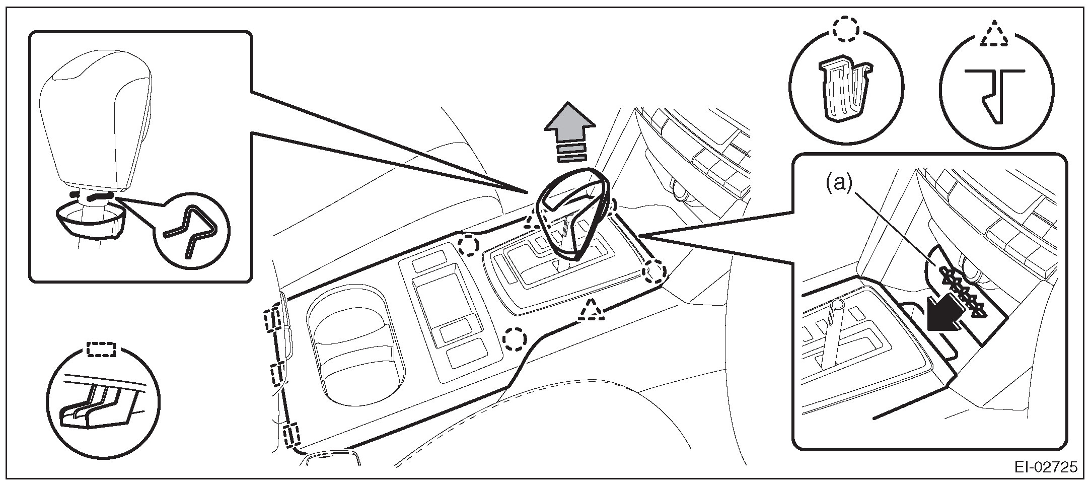 NOTE: Turn over the front center pocket mat (a) and pull up the console front cover from the slit.