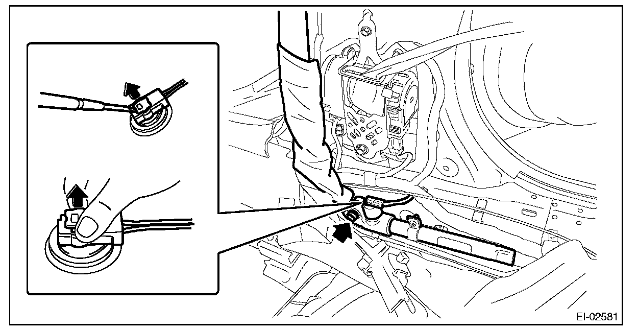 NOTE: On passenger's side, disconnect the connector of the seat belt tension sensor.