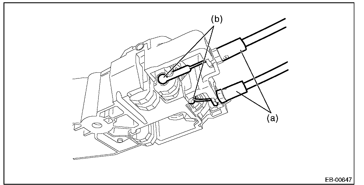 3. Remove the cables (a) and (b) from the cable holder of inner remote.