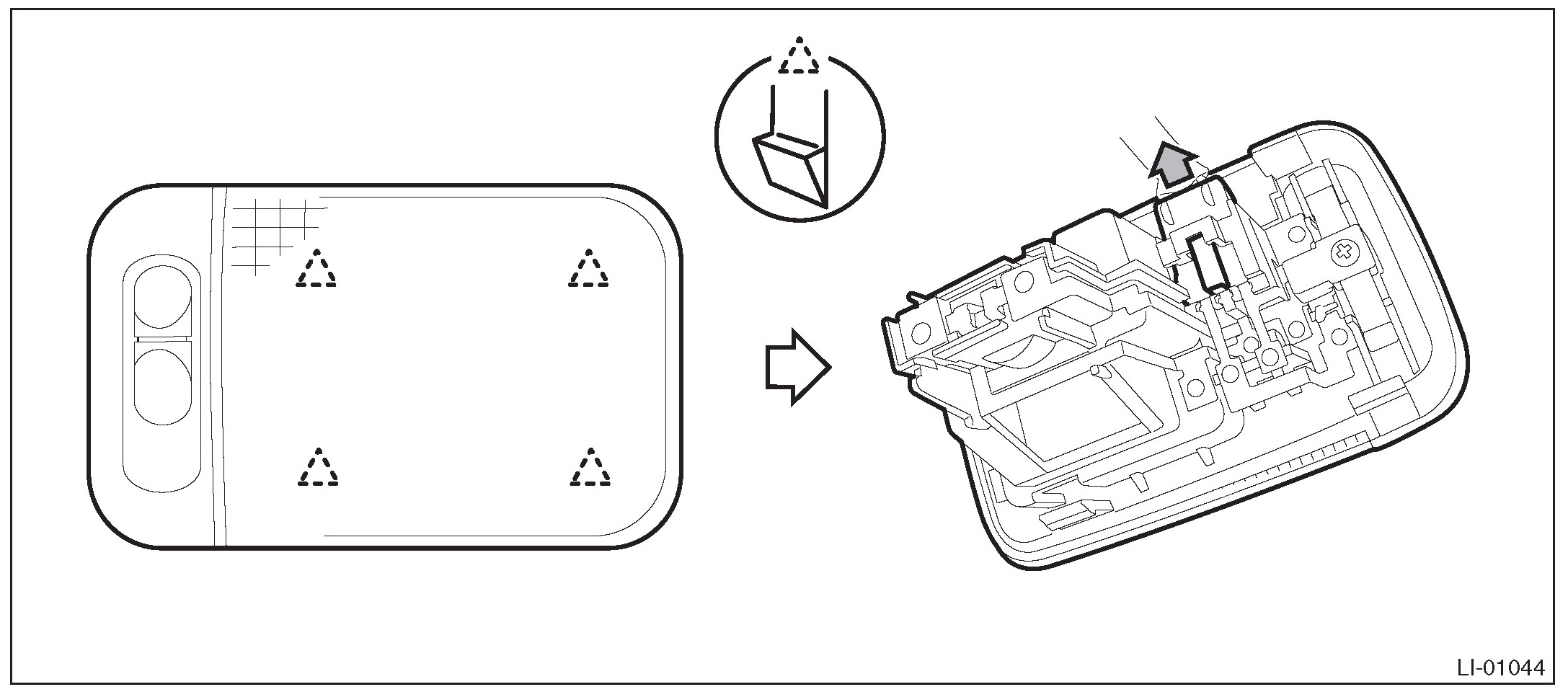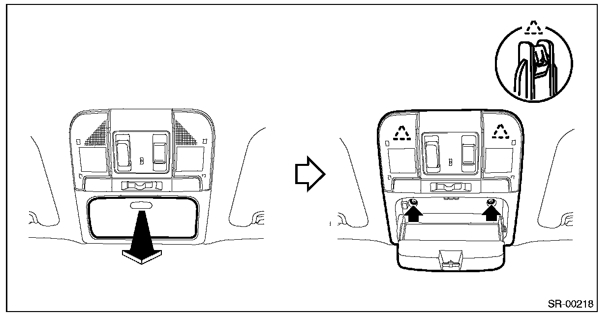 1. Push and open the rear end of the overhead console lid, and remove the screws.