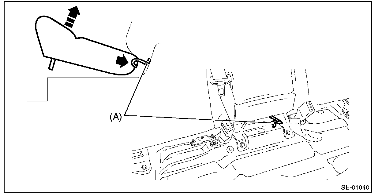 2. Remove the hook (A) by pushing it back while lifting the front side of the seat cushion, and remove the seat cushion.