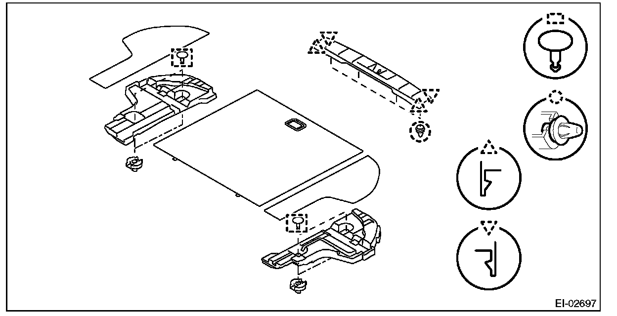 7. Remove the clips, and remove the luggage floor box and rear floor edge cover.
