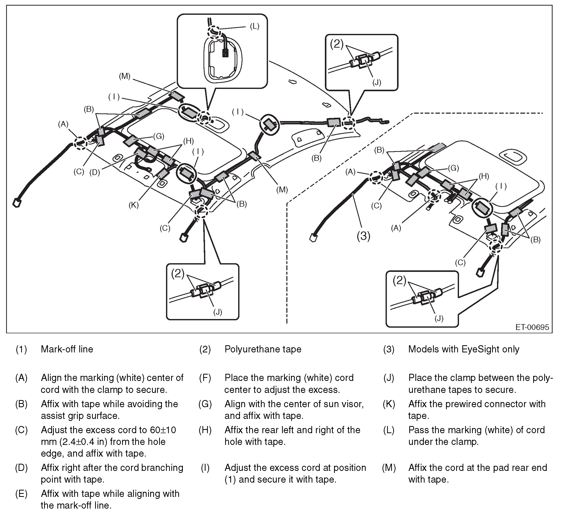 - For installation of the stereo camera cover, refer to "INSTALLATION", "Stereo Camera Cover" in the "EyeSight" section and observe the precautions for installation.