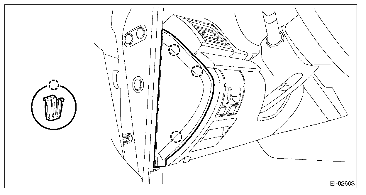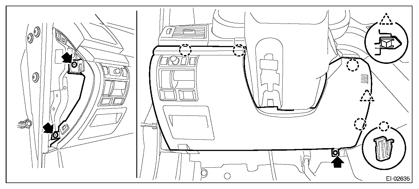 (1) Remove the clips, and remove the instrument panel side cover LH.