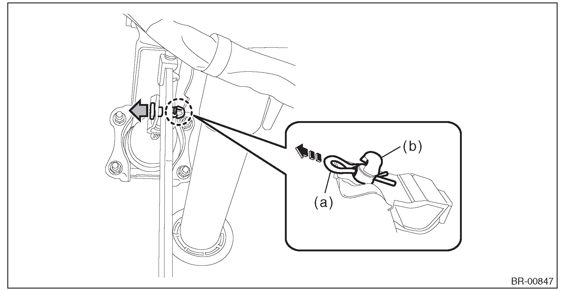 (2) Remove the snap pin (a) and clevis pin (b), and remove the operating rod from the brake pedal.