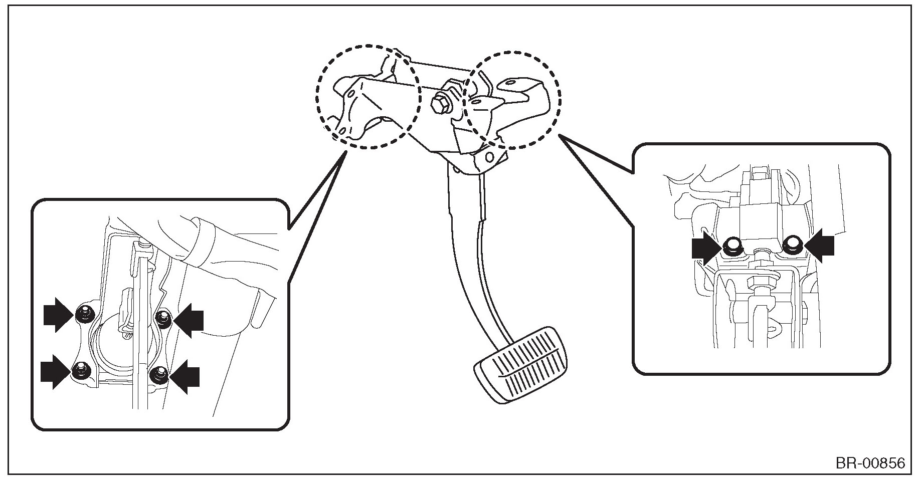 (3) Remove the bolt and nut, and then detach the brake pedal assembly.