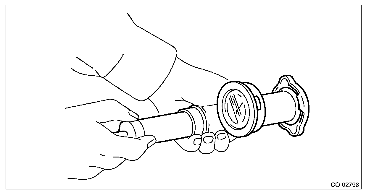 2) Attach the radiator cap tester to radiator cap.