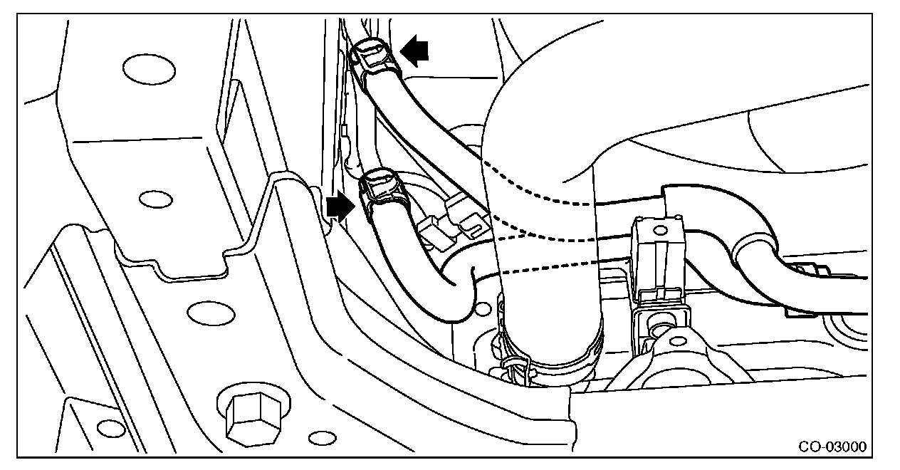 9) Disconnect the CVTF cooler hoses from the CVTF pipes. (CVT model)