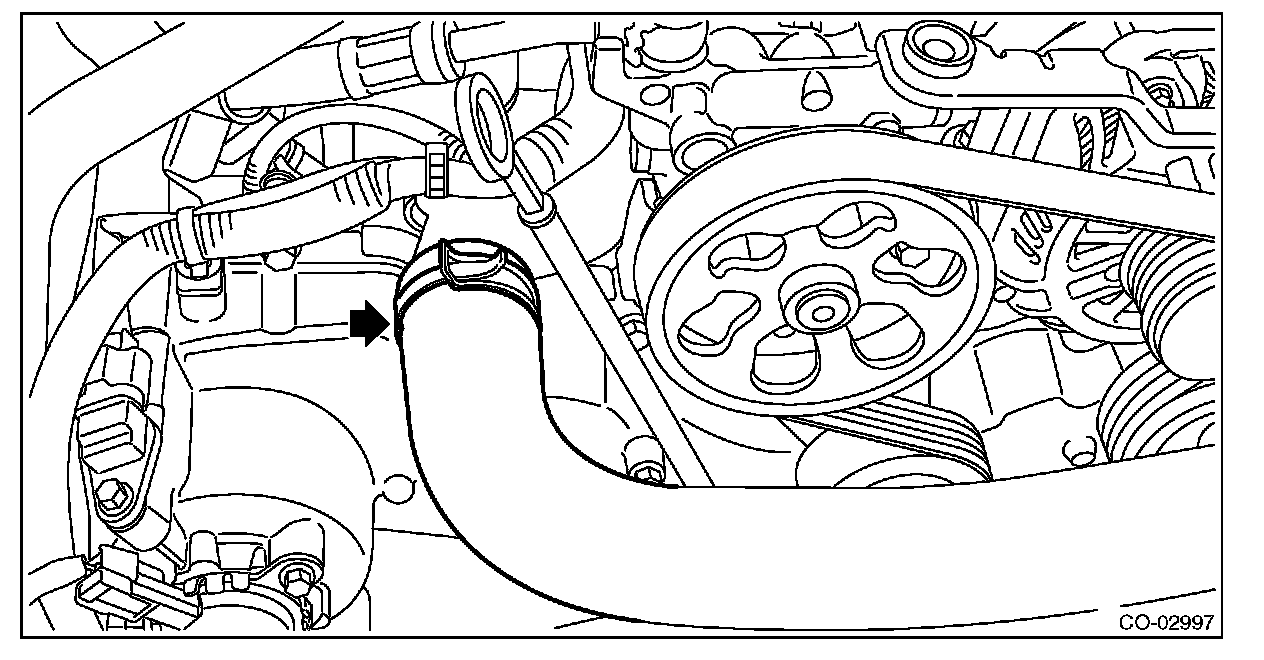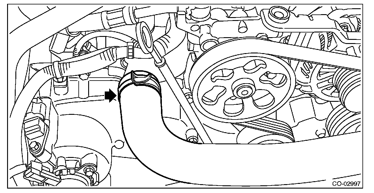 13) Disconnect the radiator inlet hose from the water pipe assembly.