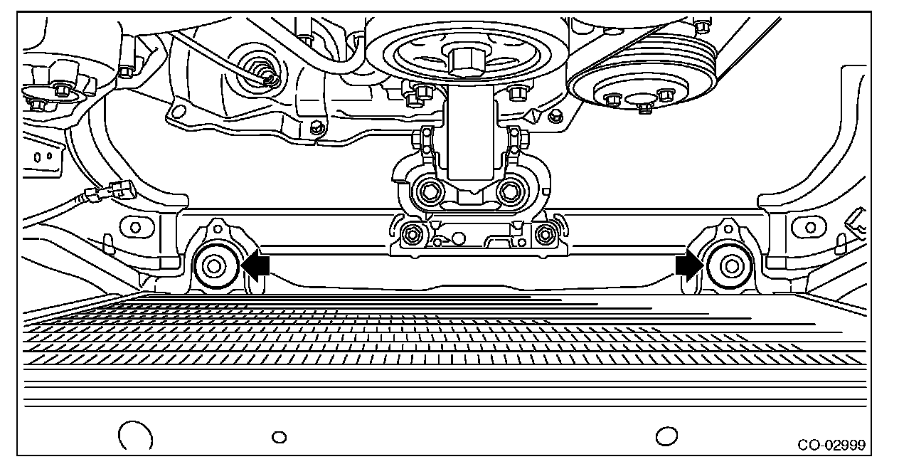 1) Attach the radiator lower cushion to the radiator lower bracket.