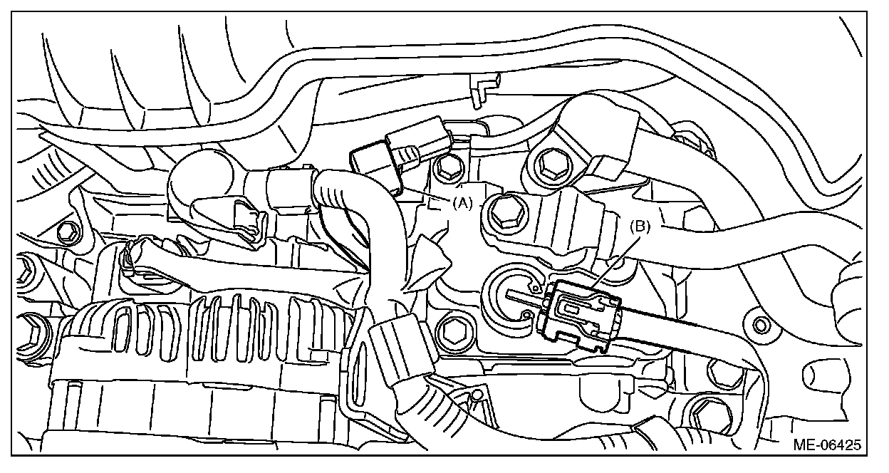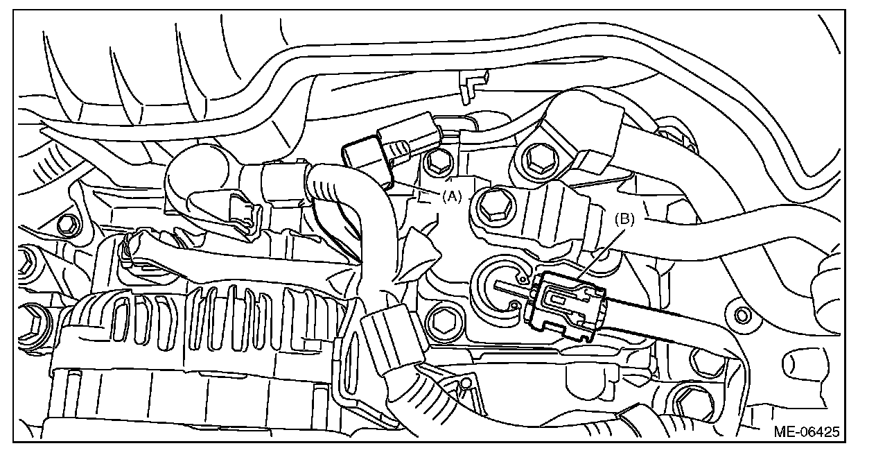 15) Disconnect the connectors (A) and (B) from the A/C compressor.