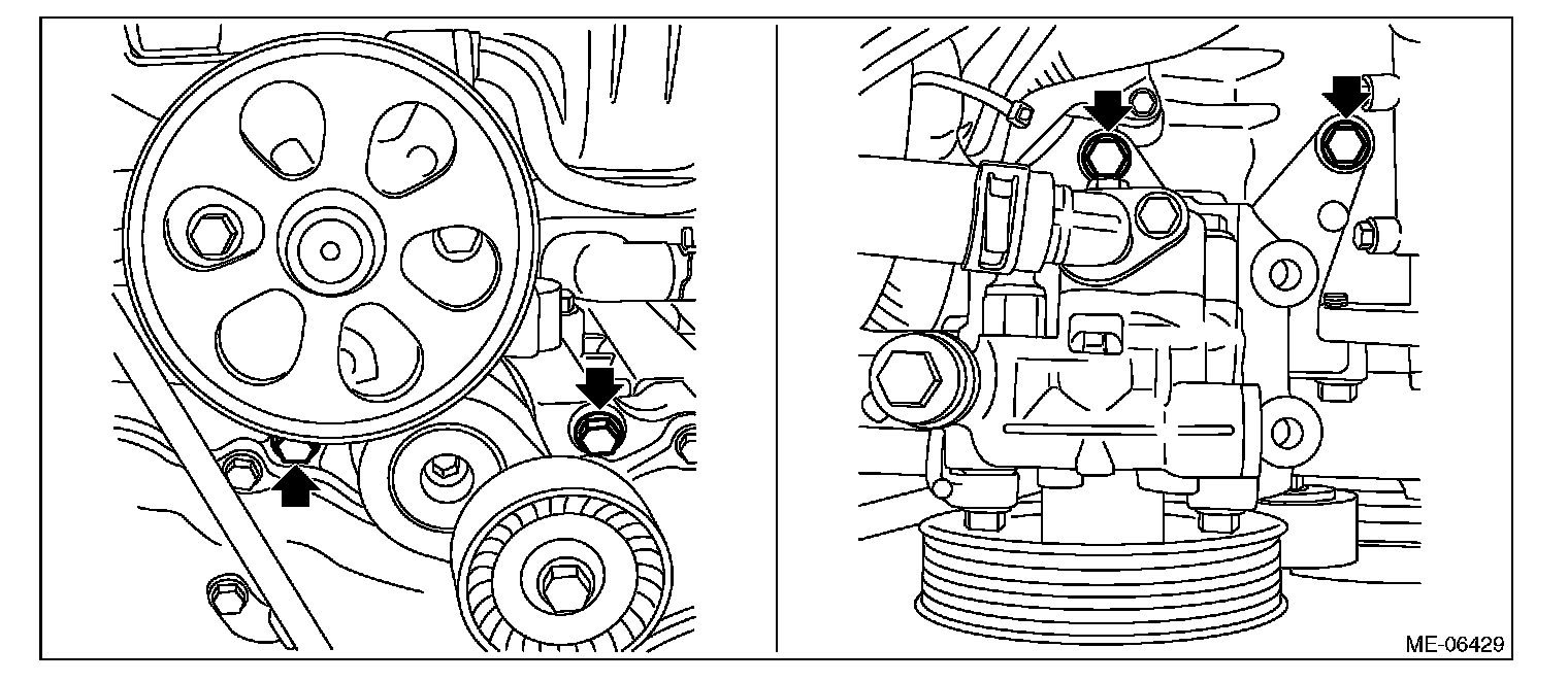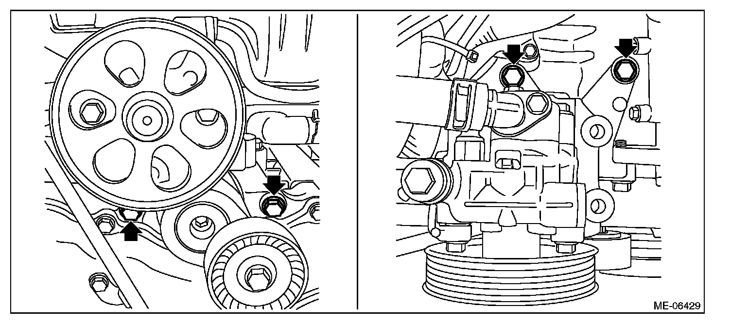 (2) Remove the power steering pump together with the power steering pump bracket from the engine.