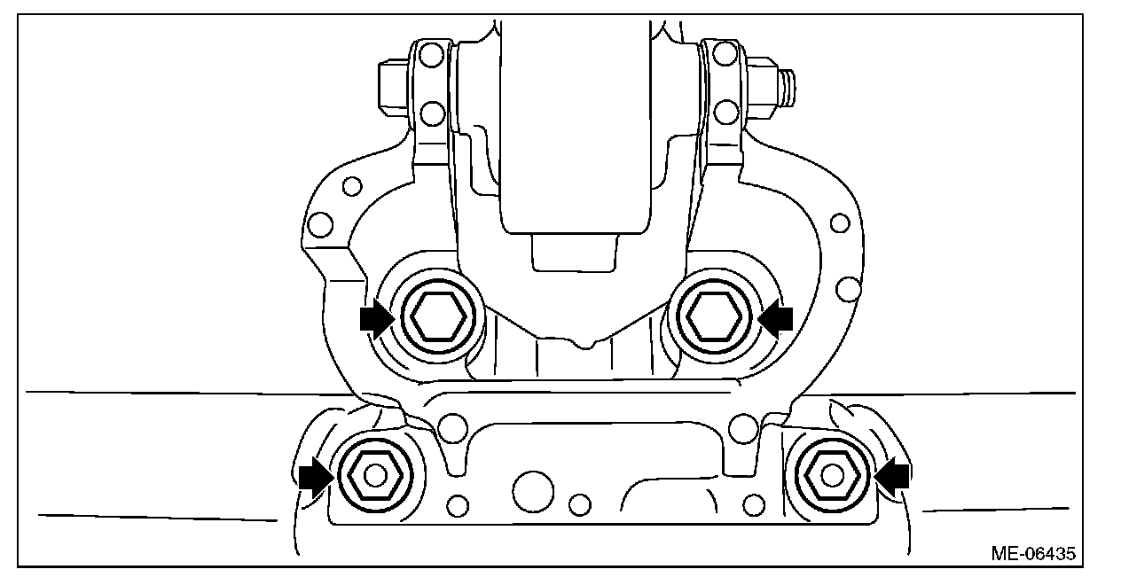 6) Attach the bolts and nuts which secure engine mounting to the cradle.