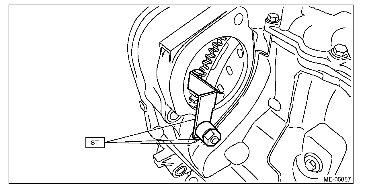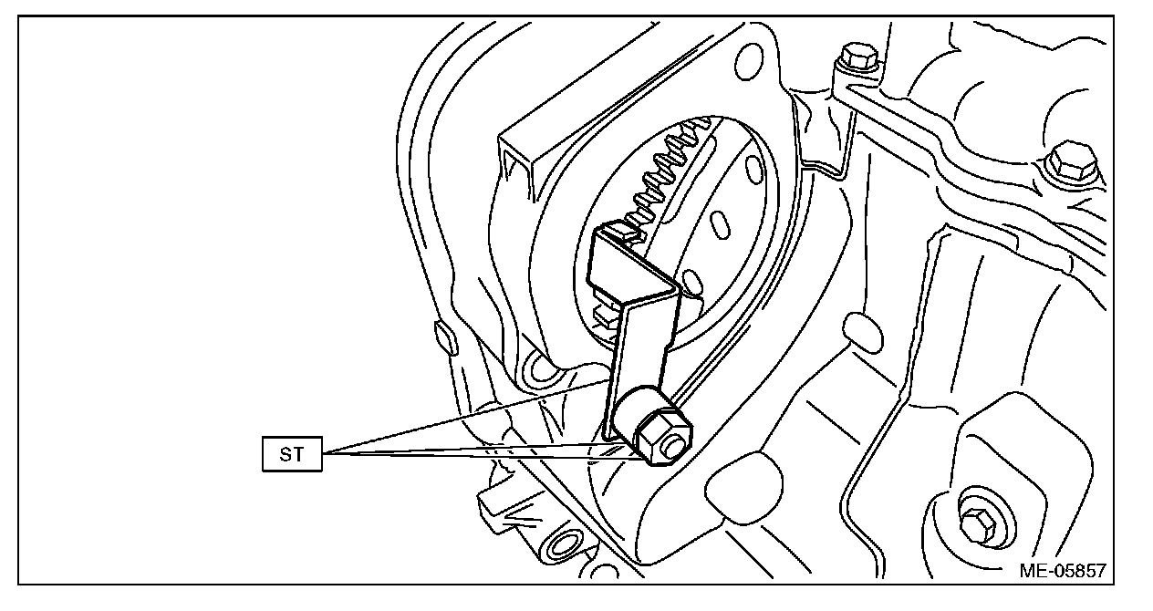 (2) Attach the ST to the torque converter clutch case. (CVT model)