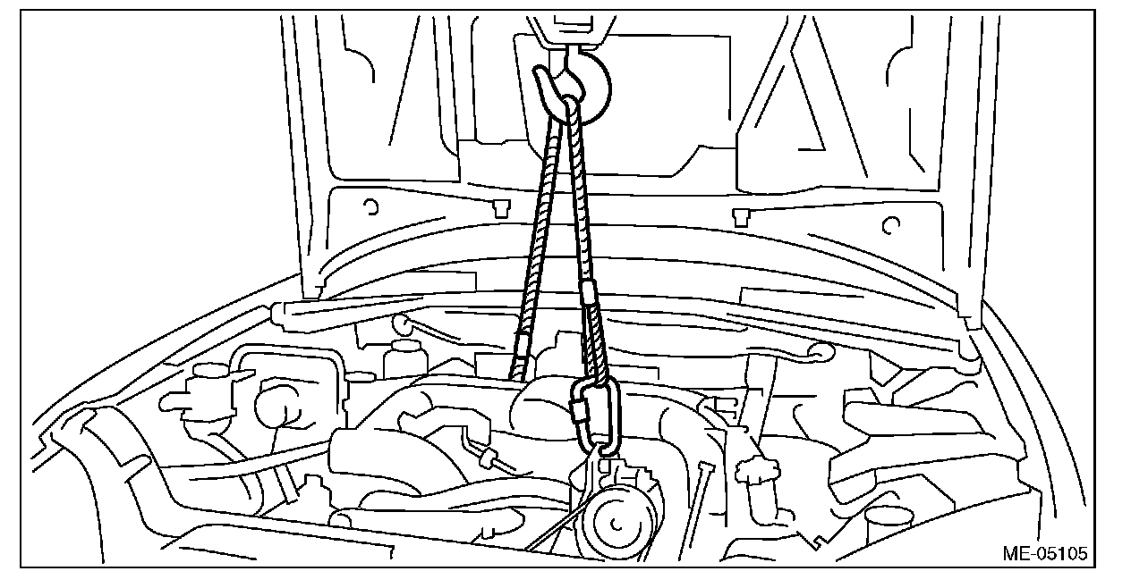 29) Support the engine with a lifting device and wire ropes.