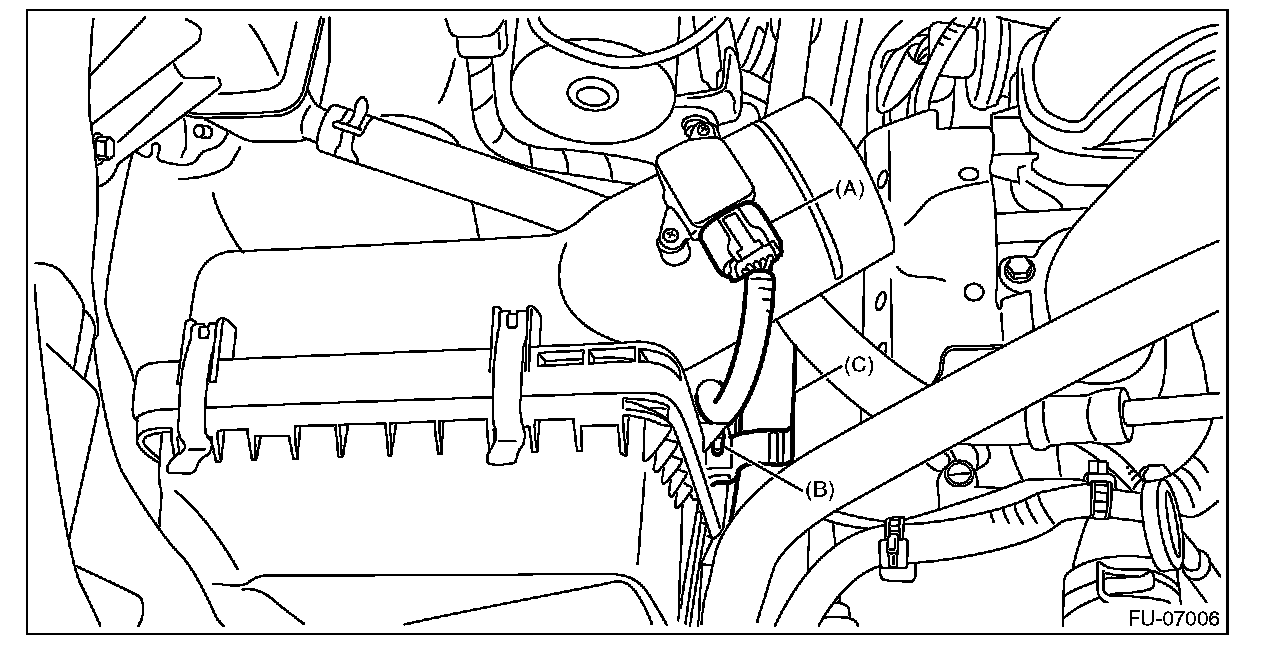 25) Install the suction hose (C) to the air cleaner case.