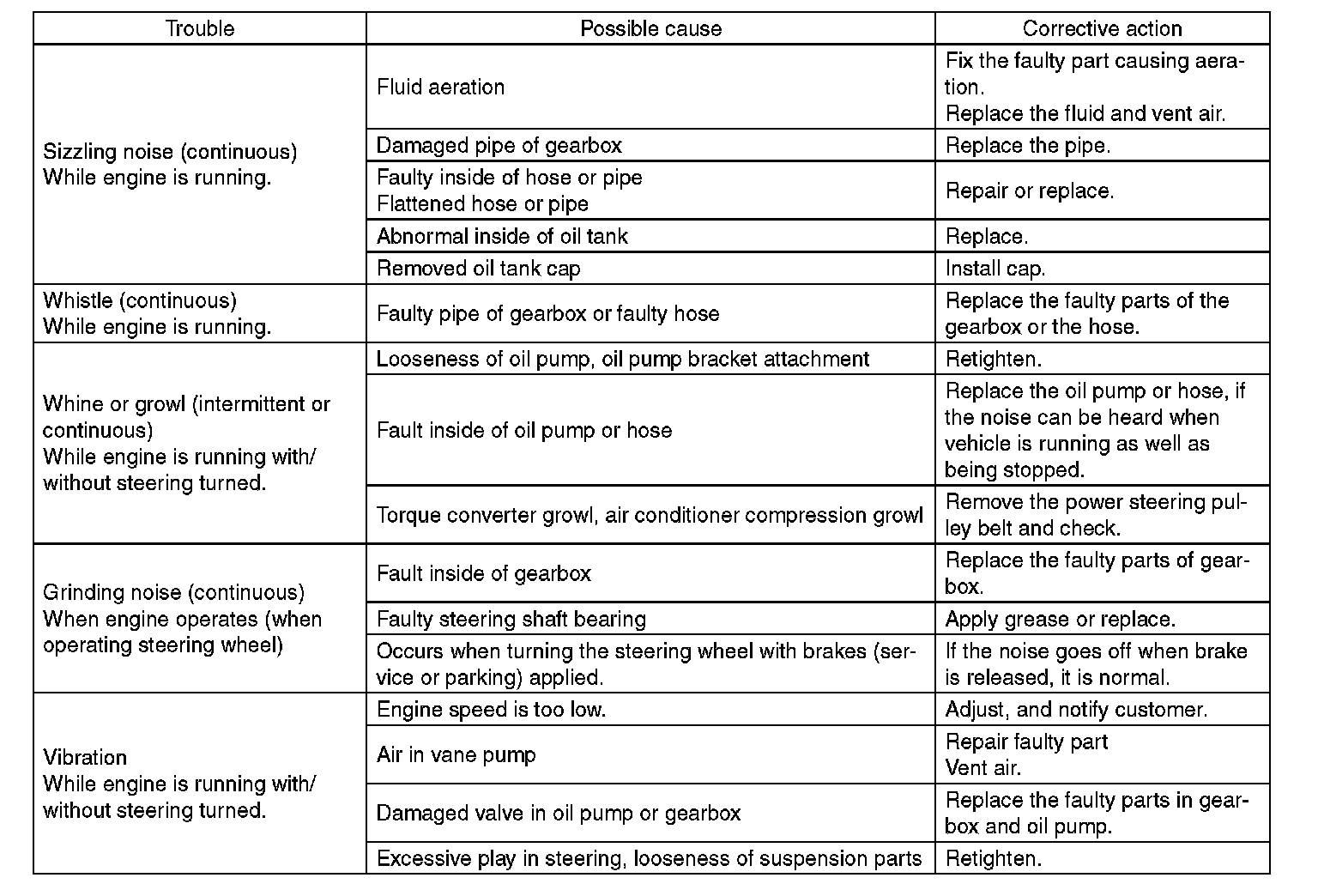 ^ The oil pump normally makes a small whining noise due to its mechanism. Even if a noise is heard when steering wheel is turned at stand still, there is no abnormal function in the system provided that the noise eliminates when the vehicle is driving.