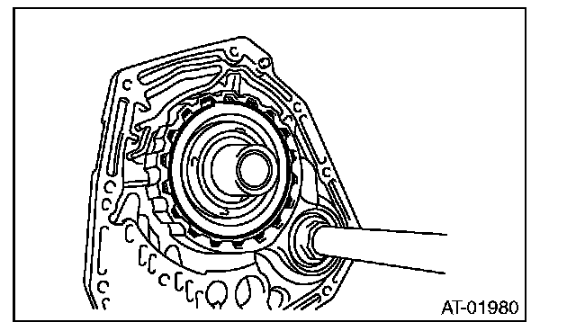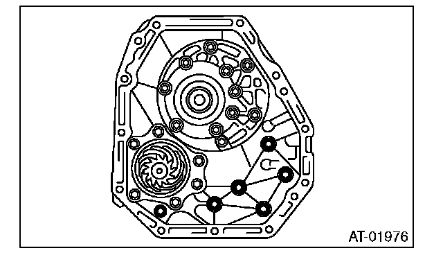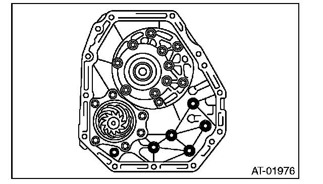 6) Remove the oil pump cover mounting bolt, and then separate the oil pump cover from the AT main case by lightly tapping with plastic hammer.